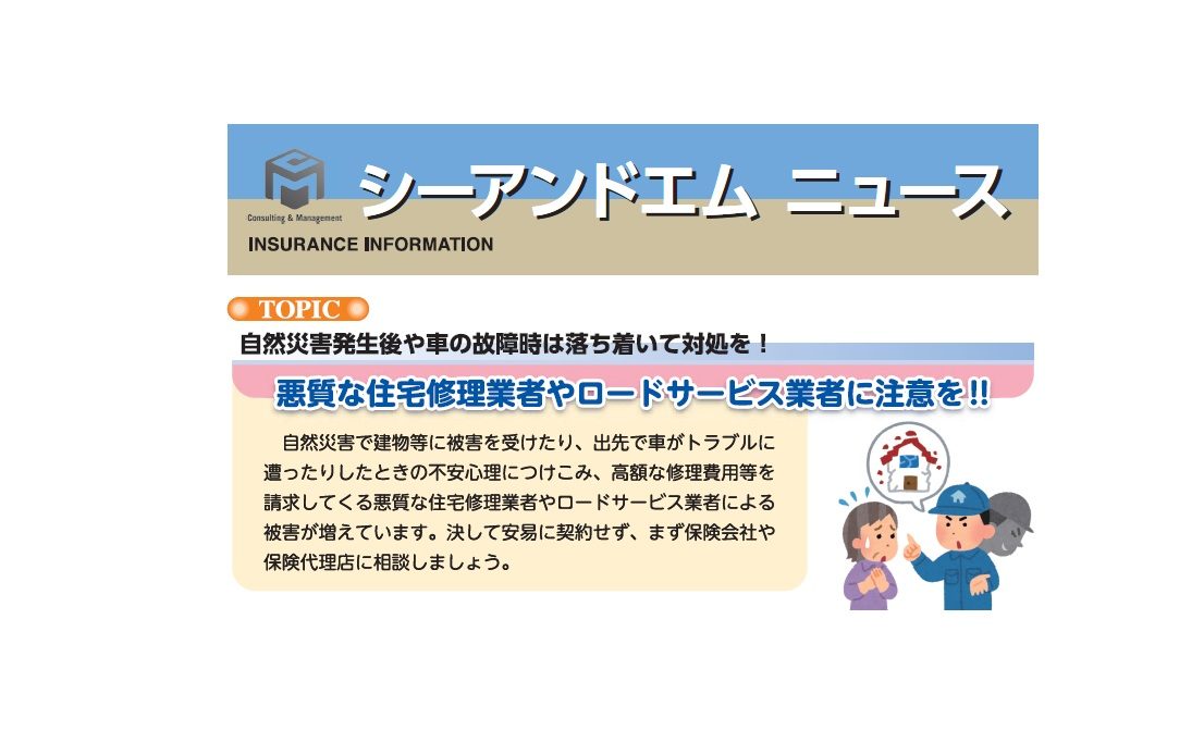 自然災害で建物等に被害を受けたり、出先で車がトラブルに遭ったりしたときの不安心理につけこみ、